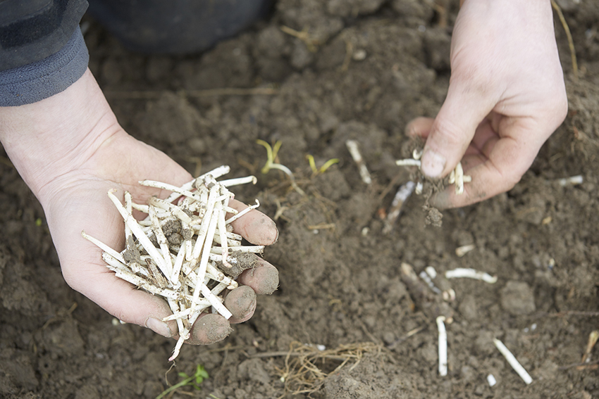 Oogsten kan op twee manieren. ‘Hopwortelblokken op leeftijd, zo een jaar of 15 oud, die niet veel hop meer opbrengen, worden gerooid en in een oude varkensstal, mét vloerverwarming, bedekt met een flinke laag aarde.’ Intafelen in het jargon. Die hopwortelblokken leveren de eerste hopscheuten van het jaar. Echte fijnproevers wachten op de exemplaren uit het veld. Die zijn bedekt met een flinke laag aarde en zwart-wit plastic. De zwarte kant absorbeert de zon en warmt de scheuten op waardoor ze sneller schieten. Vanaf half maart wordt die plastic omgedraaid zodat de witte kant de zon weerkaatst en dat proces vertraagt. Kwestie van er zo lang mogelijk van te kunnen genieten. ‘Hun kernsmaak is dezelfde, maar doordat de veldhopscheuten harder moeten vechten, smaken ze intenser.’ Eens geoogst komt het erop aan om de scheuten zo snel mogelijk te verorberen. ’s Morgens geplukt, ’s middags op je bord.